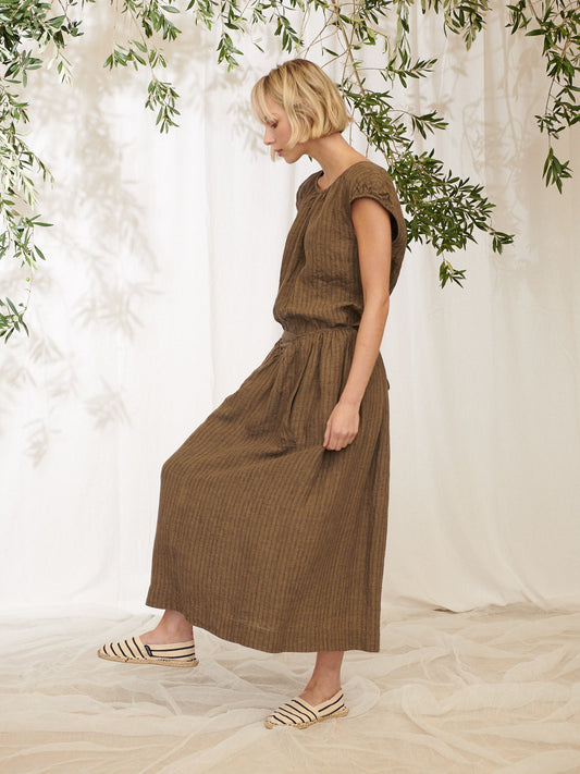 Manteau Noir ~ Ava Boat Neck Linen Check Gauze Dress