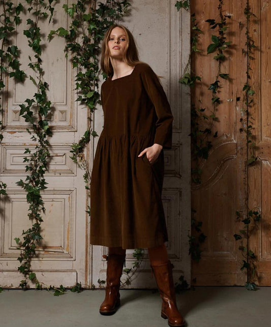 Manteau Noir Patron Square Neck Pinwale Cord Dress