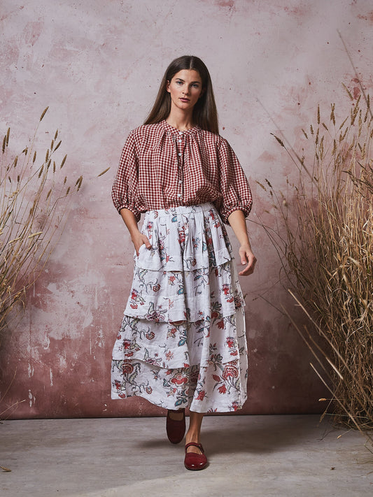 Manteau Noir Indienne Print Marie-Claude Linen Skirt