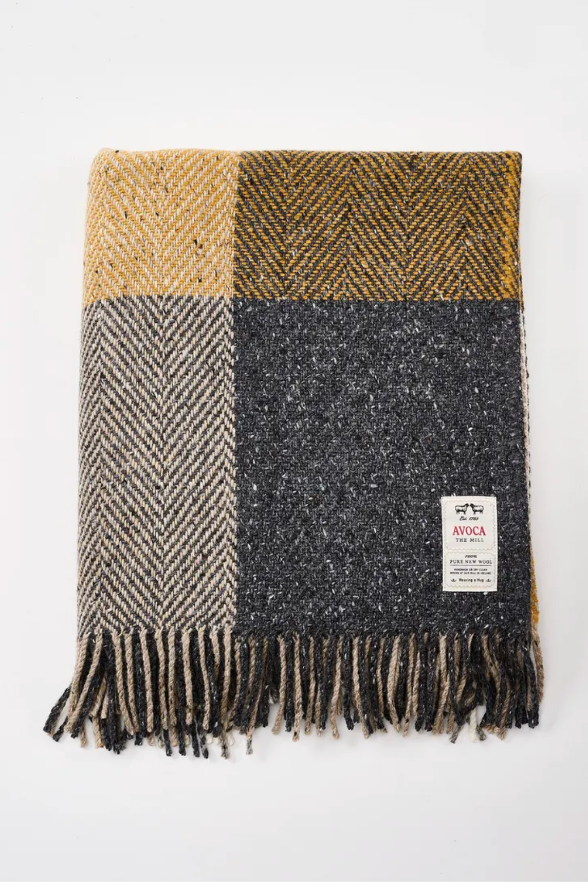 In a rich palette of navy and oatmeal, this luxurious throw suits any interior. Expertly crafted at the Avoca Mill in Ireland, it’s woven from thick Donegal yarn in a timeless herringbone pattern and finished with chunky fringing, adding both warmth and rustic elegance to your space.