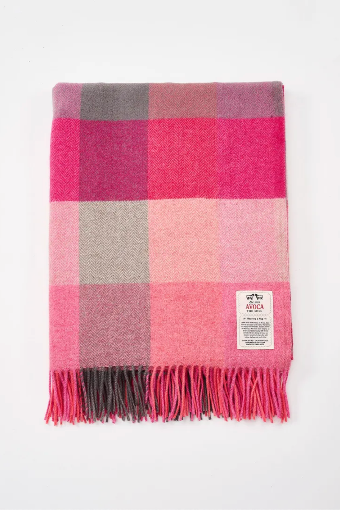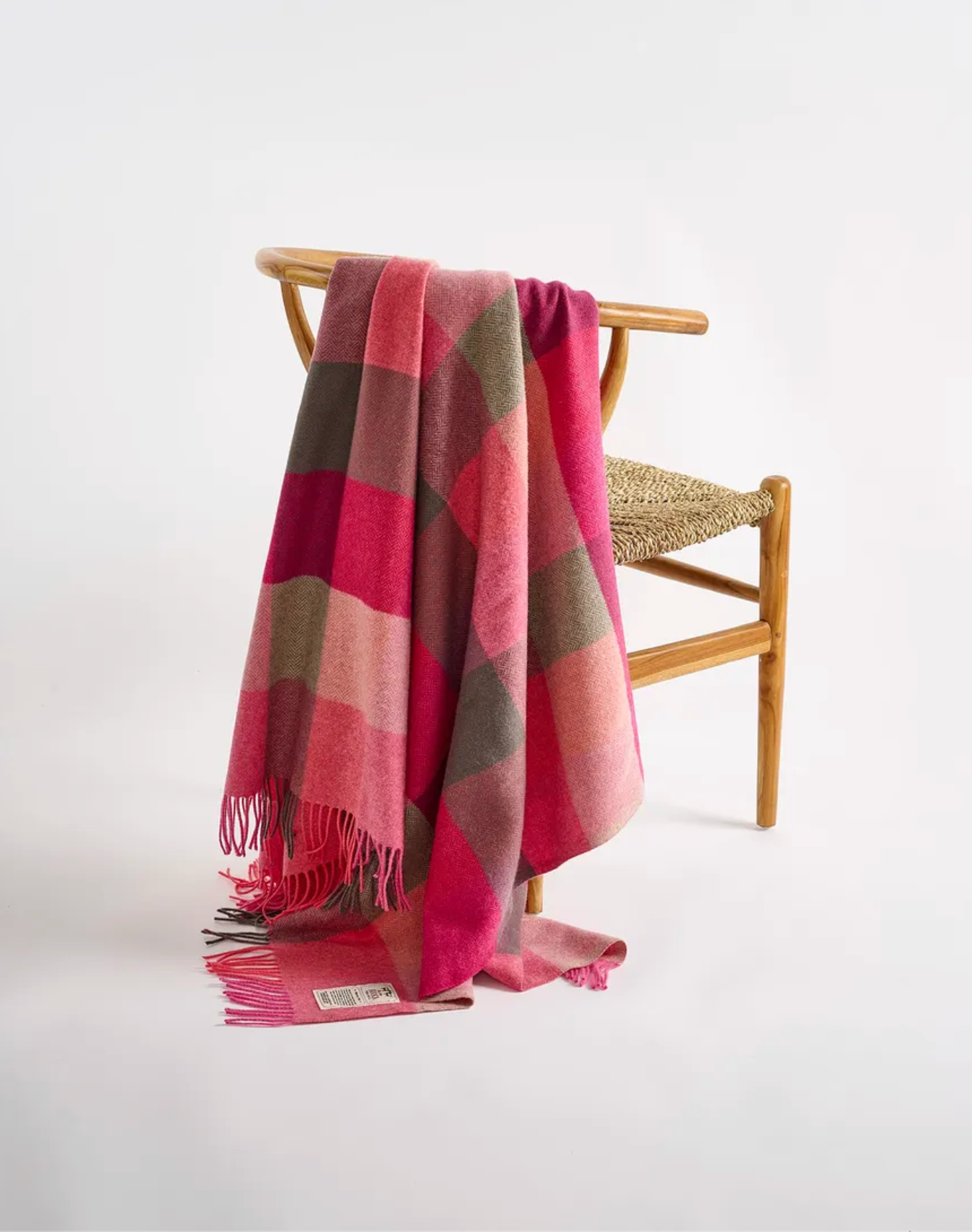 A landscape of rich pink tones decorate this 100% pure new lambswool throw. Crafted in our mill, with a delicate fringe detailing, this throw promises to add a touch of chic warmth to your home.