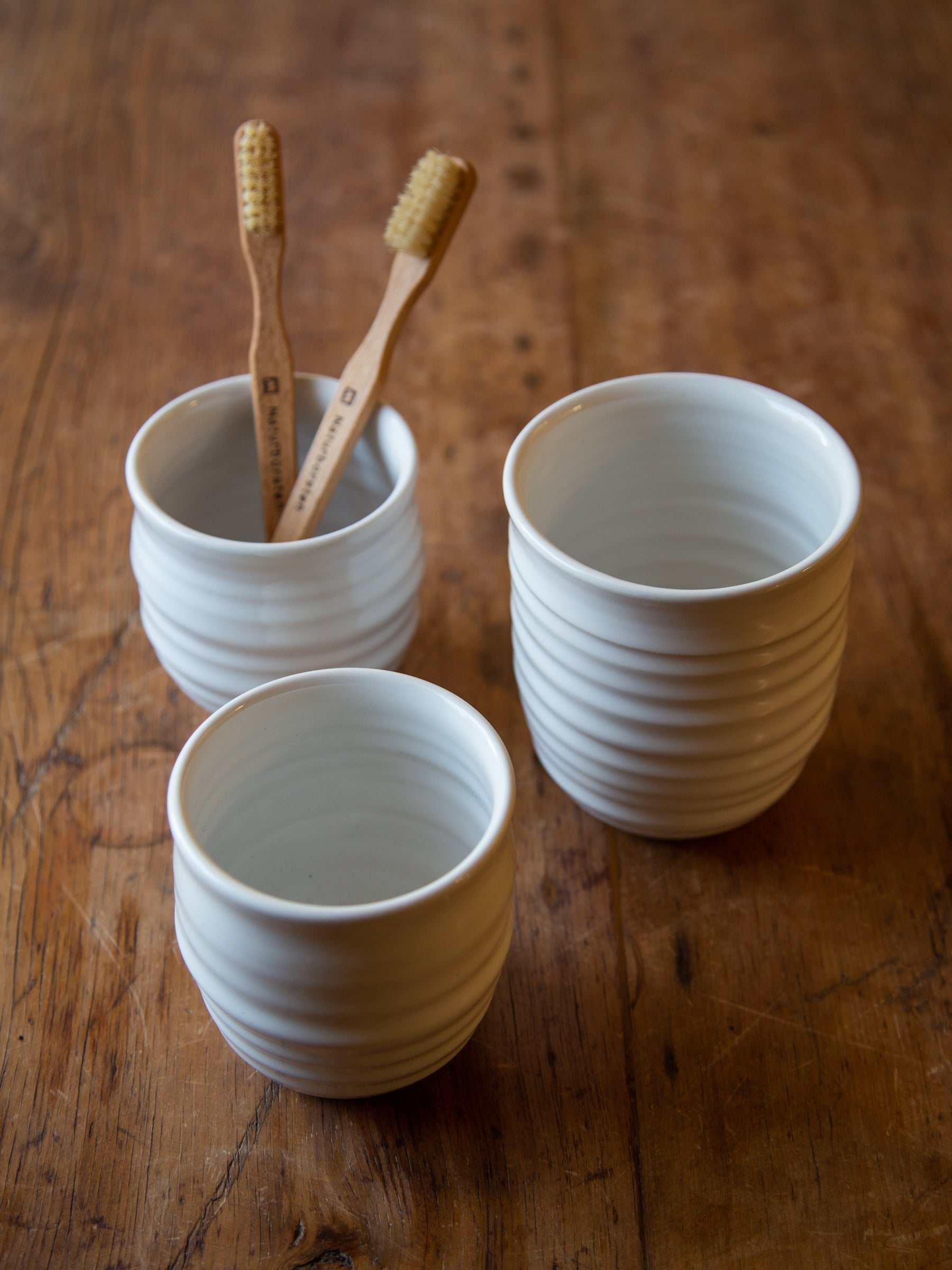 The Beakers are Heatproof and dishwasher safe and are available in two colours - White and Bone and in two sizes - small and large.