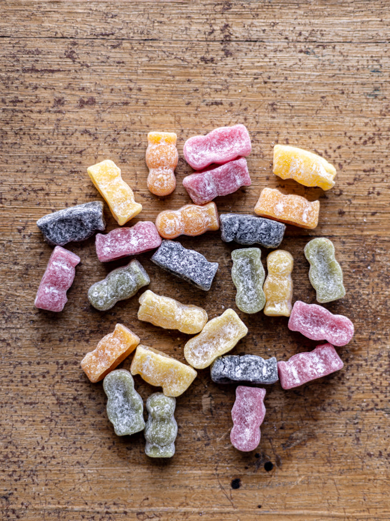 Dusted Jelly Babies are an English sweet. Larger than a standard Jelly Baby and a little sweeter they have a light sugar dusting coating them.
