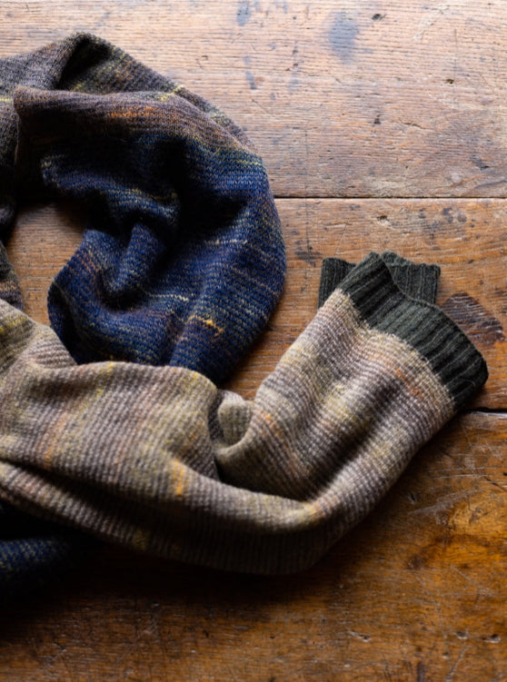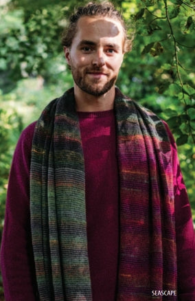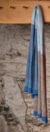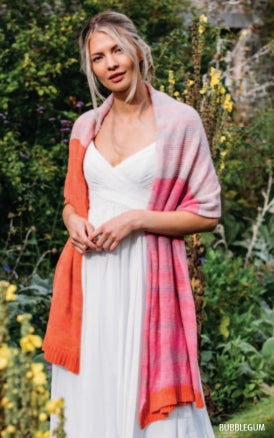 Beautifully soft and lightweight wool and mohair wrap giving volume in subtly changing colours and block stripes.