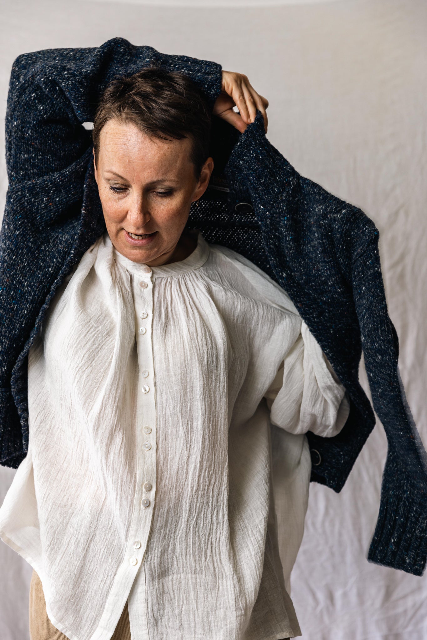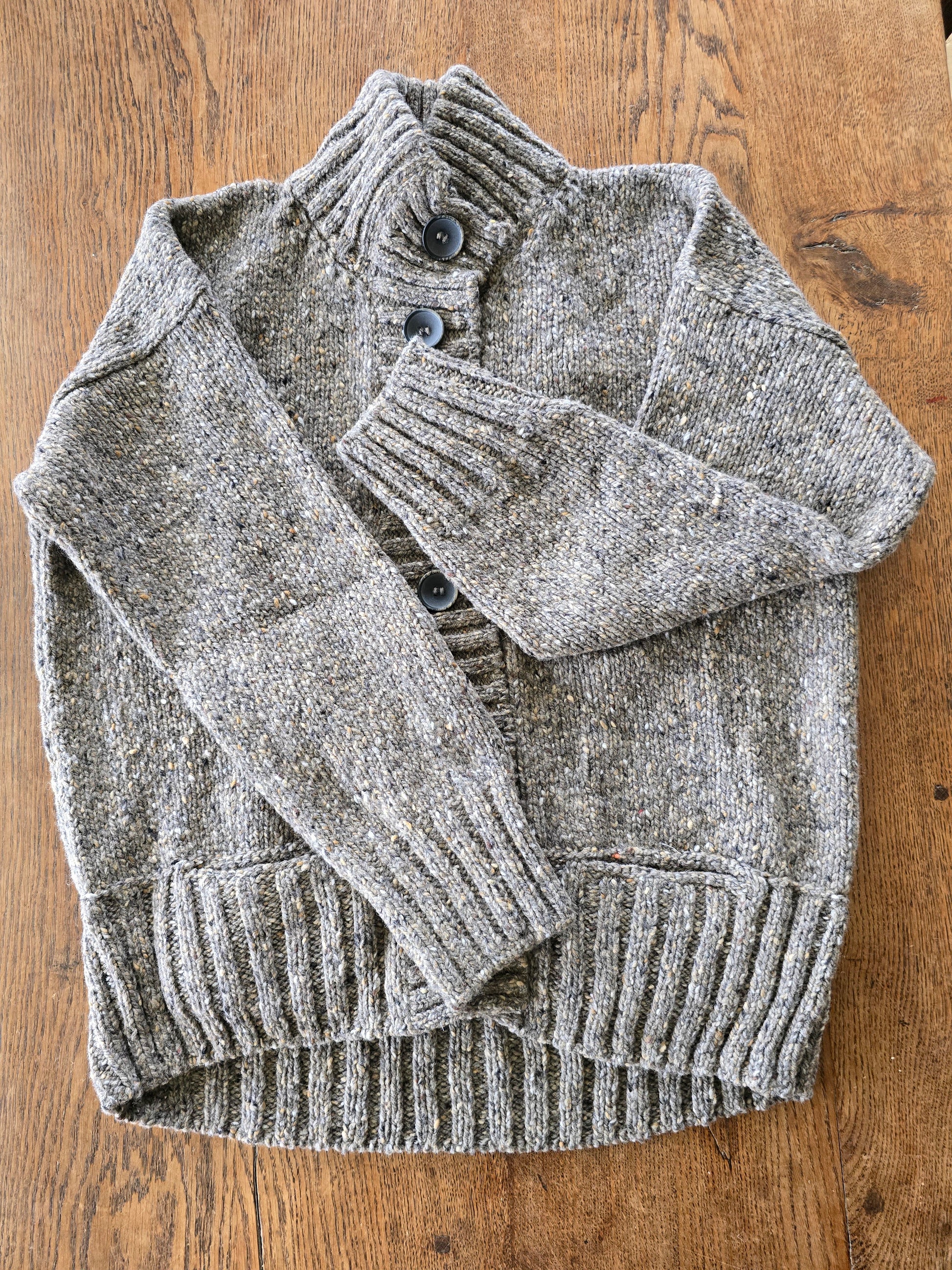 Enjoy sublime comfort without compromising style in this beautiful cardigan. Made with 100% Merino wool, this piece offers impressive warmth that will get you through the colder months. Among its highlights are full-button closure, two hidden pockets and a high-neck ribbed collar. Like all Fisherman’s styles, this piece is knit in Donegal using only natural fibers for an authentic feel and finish.