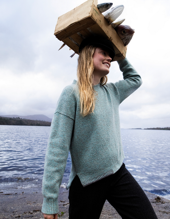 Fisherman Out of Ireland ~ Ladies Blanket Stitch Crew Jumper