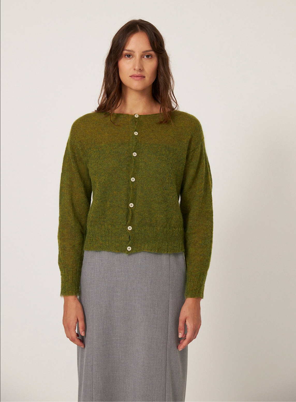 Made from a soft and sheer Italian mohair blend, the Fleur cardigan gently cinches at the waist to subtly accentuate the form.