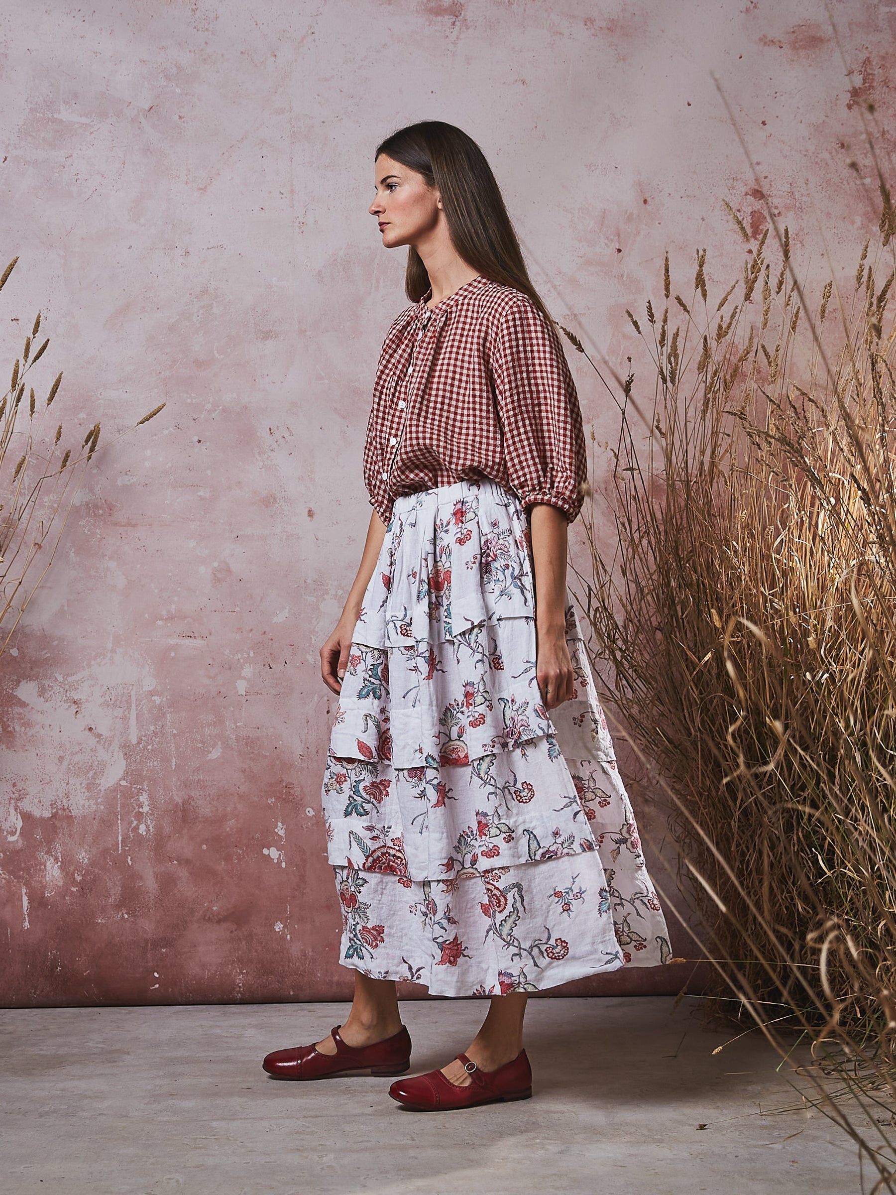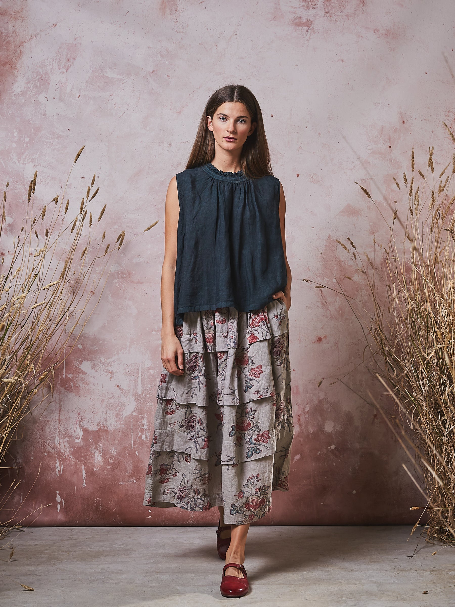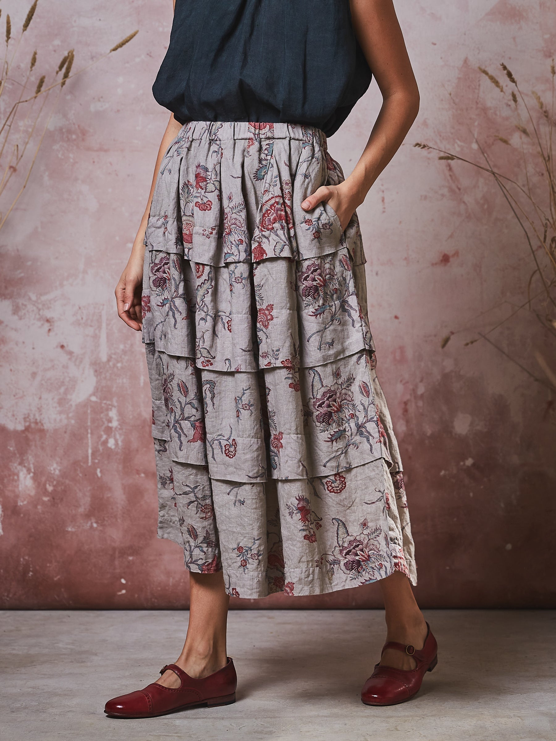 Manteau Noir Indienne Print Marie-Claude Linen Skirt