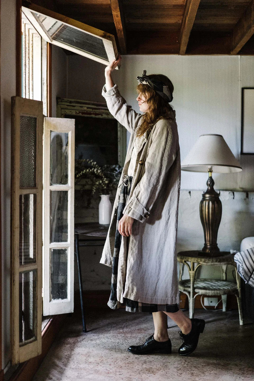 Originally designed for horsemen to protect their clothing from trail dust in the late 1800's, the traditional duster was then adapted and used for protection in automobile attire. We loved an original duster that we stumbled across, with its detailing and silhouette dating it around 1900-1915 and were inspired to create our own Metta Melbourne rendition.