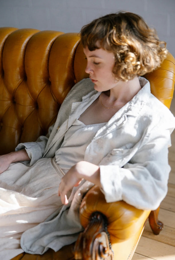 The Dominique Blazer features side pockets with flaps which you can tuck in if you like and an upper welt pocket. This unlined jacket is made in a mid weight Linen for a lovely and light layering piece.