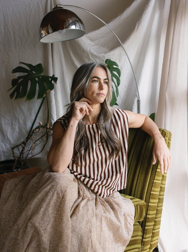 The Ulla Skirt is crafted from Metta's limited edition Ginza printed Voile. The Ulla features soft cotton voile lining, concealed elasticated waistband, pockets, pleats at the front and back, and an internal woven cotton drawstring with gathering that billows from the waist to the hem.
