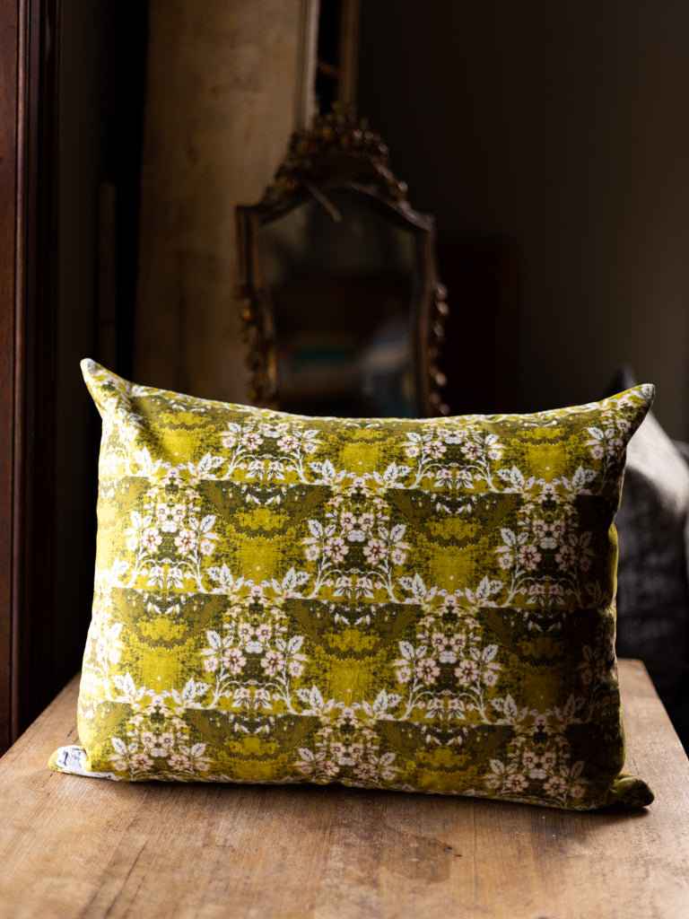 Printed Double Sided Velveteen Cushion ~ Cherry Blossom Green