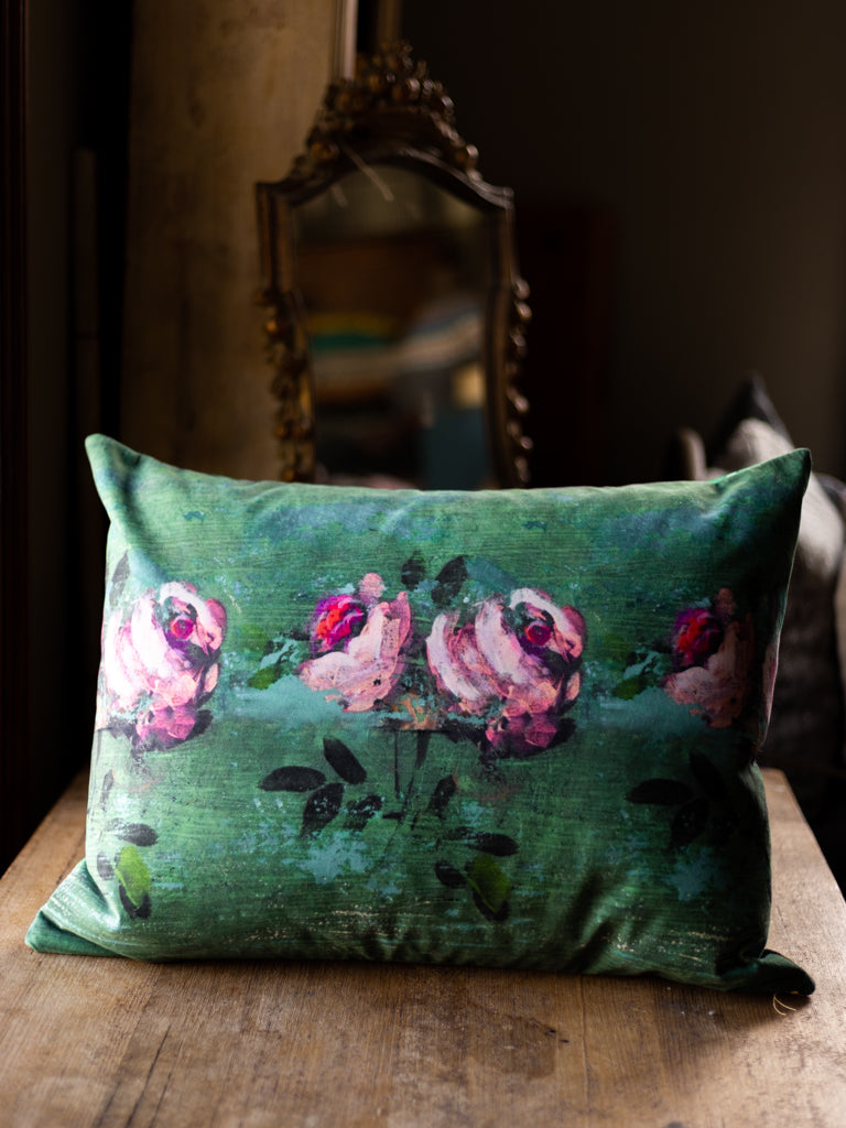 Printed Double Sided Velveteen Cushion ~ Pink Rose & Bird