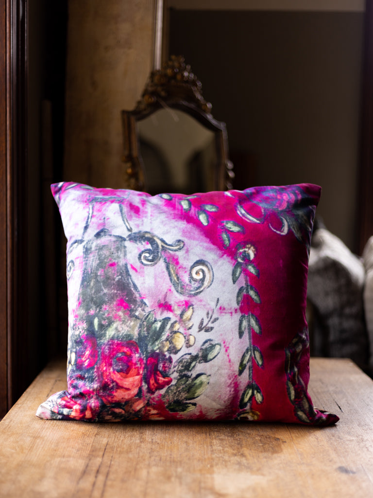 Printed Double Sided Velveteen Cushion ~ Bold Rose