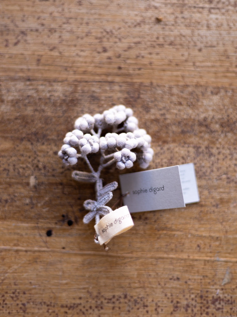 One off natural fiber brooch, designed in France by Sophie Digard.