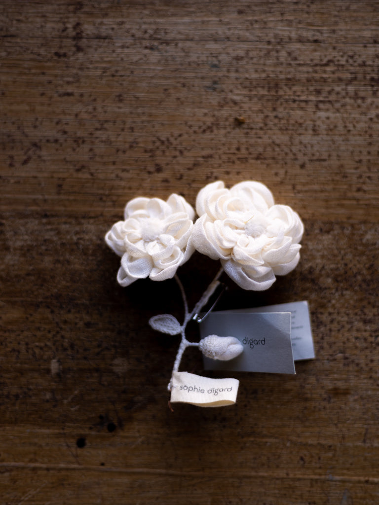 One off natural fiber brooch, designed in France by Sophie Digard.