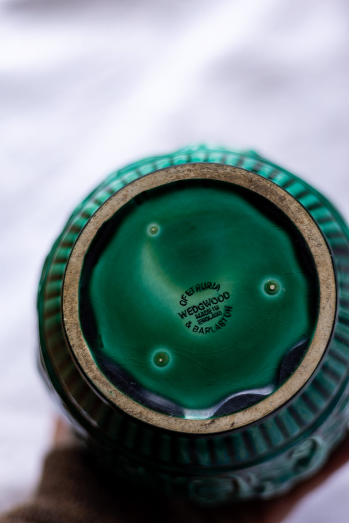 This piece is stamped Wedgwood of Etruria on the bottom and was made in England.