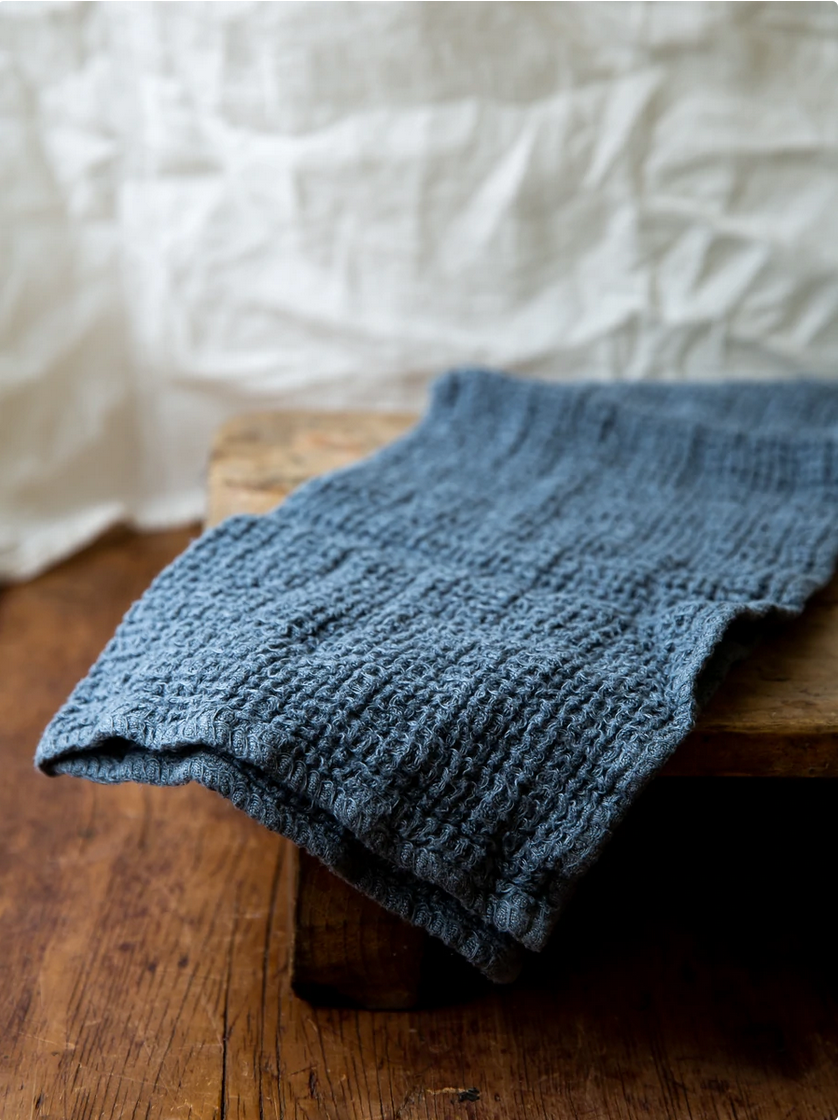 Made from premium pure linen yarns and woven in a large waffle weave, it results in a towel with depth of character like no other towel. we call it the sophisticate of the bath linens, simple, beautiful, understated and a very European way of bath textiles. timeless modernity.